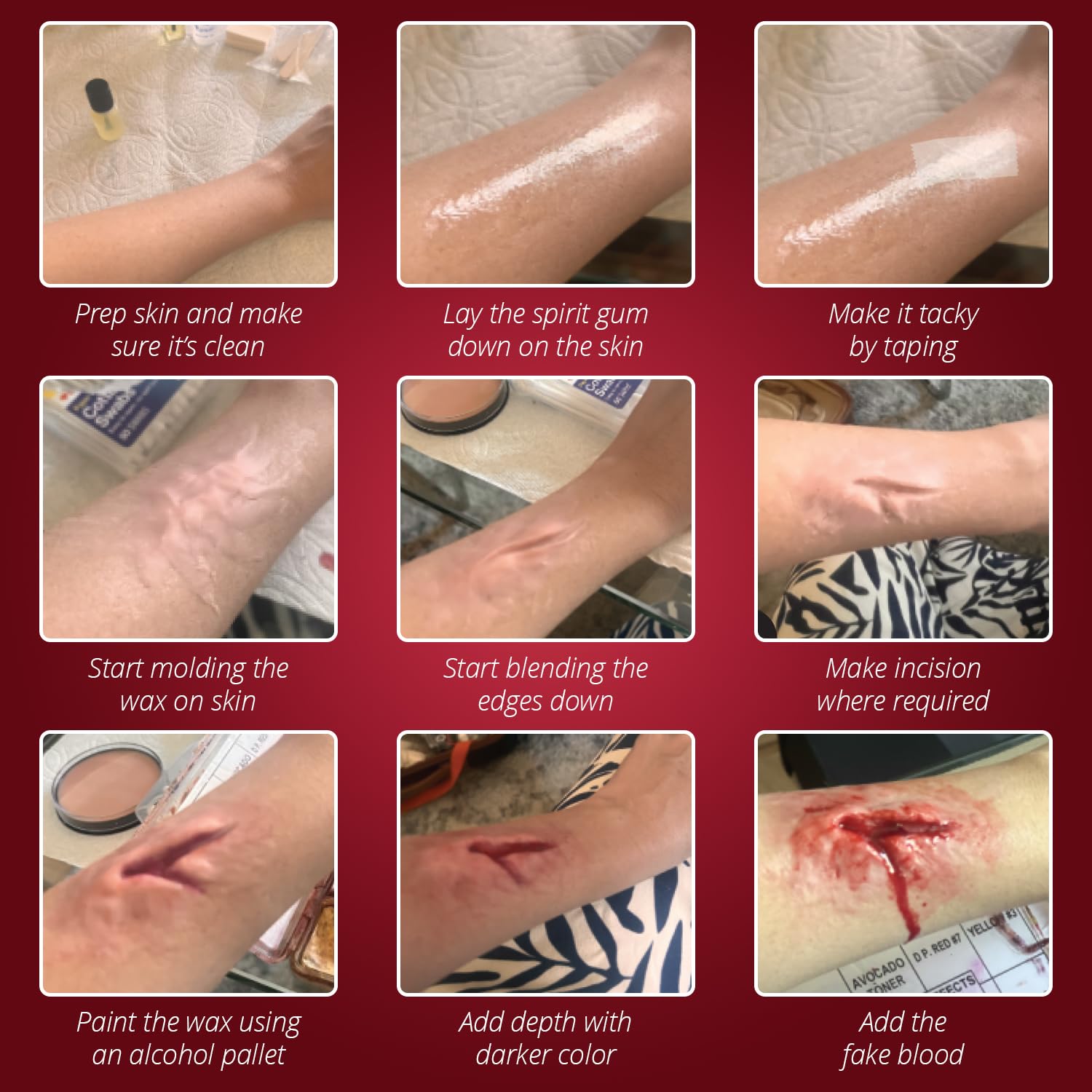 - Great for Beginners - Complete your costume with this makeup set. The easy step-by-step instructions help make the special effects easy to recreate. From cuts, scars, wounds, gashes and more.